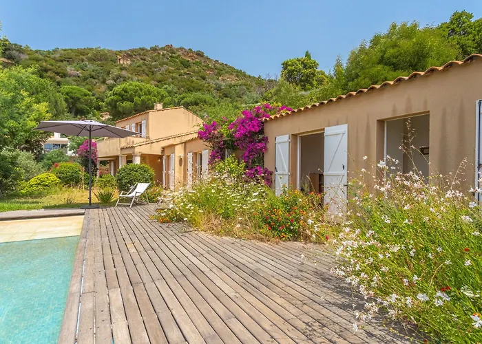 Bu tesis ile Plage de Pramousquier arasında 10 dakikalık sürüş mesafesi vardır. Çeşitli yemeklerin servis edildiği Bistrot de la Baie, Le Cannier Restaurant, villadan sadece 18 dakika yürüme mesafesindedir. Col du Canadel villanın bitişiğinde yer almaktadır.